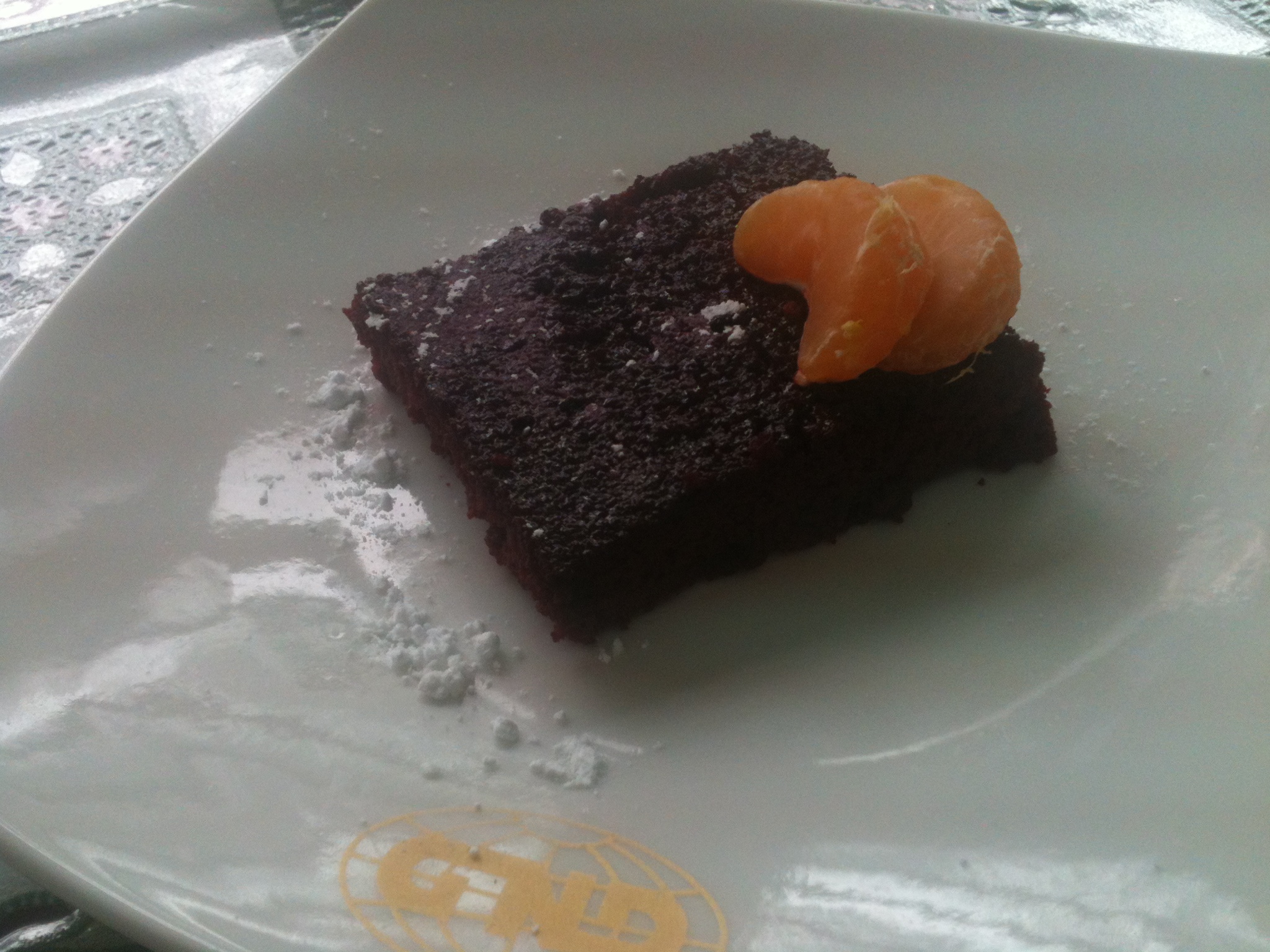 8. Enfriar bien antes de cortar el brownie. Se puede decorar con gajos de mandarina y azúcar glass espolvoreada.